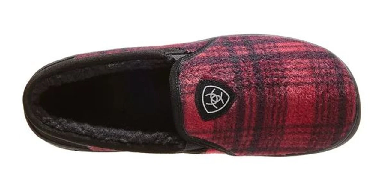 The Ariat Men’s Classic Lincoln Slippers are a handsome option offering toasty warmth in a rugged red and black blanket plaid print. Constructed from wool-blend uppers with genuine suede at the heel and collar. You will find cozy faux shearling lining on the inside for comfort, with Ariat logo patch detailing on the upper vamp for a touch of style. The full-back design keeps your entire foot warm. Featuring indoor or outdoor rubber soles, these slippers grip well for a variety of ventures. A great gift for any guy who appreciates coziness! Red and Black Blanket Plaid Print Wool-Blend Upper Genuine Suede Accents Faux Shearling Lining Ariat Logo Patch Detailing Full-Back Design Indoor/Outdoor Rubber Sole