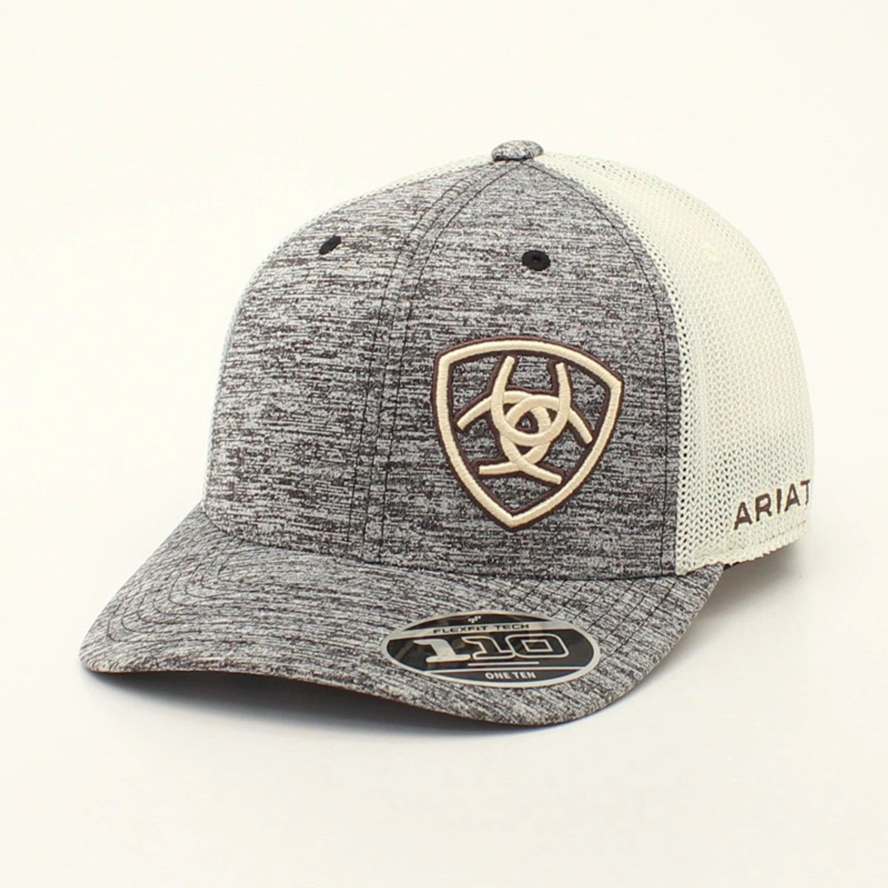 Comfortable Ariat men’s cap by M&F Western Products. Heather grey front panels and bill with an off set Ariat sheild logo. Tan mesh with snapback closure for a perfect fit.