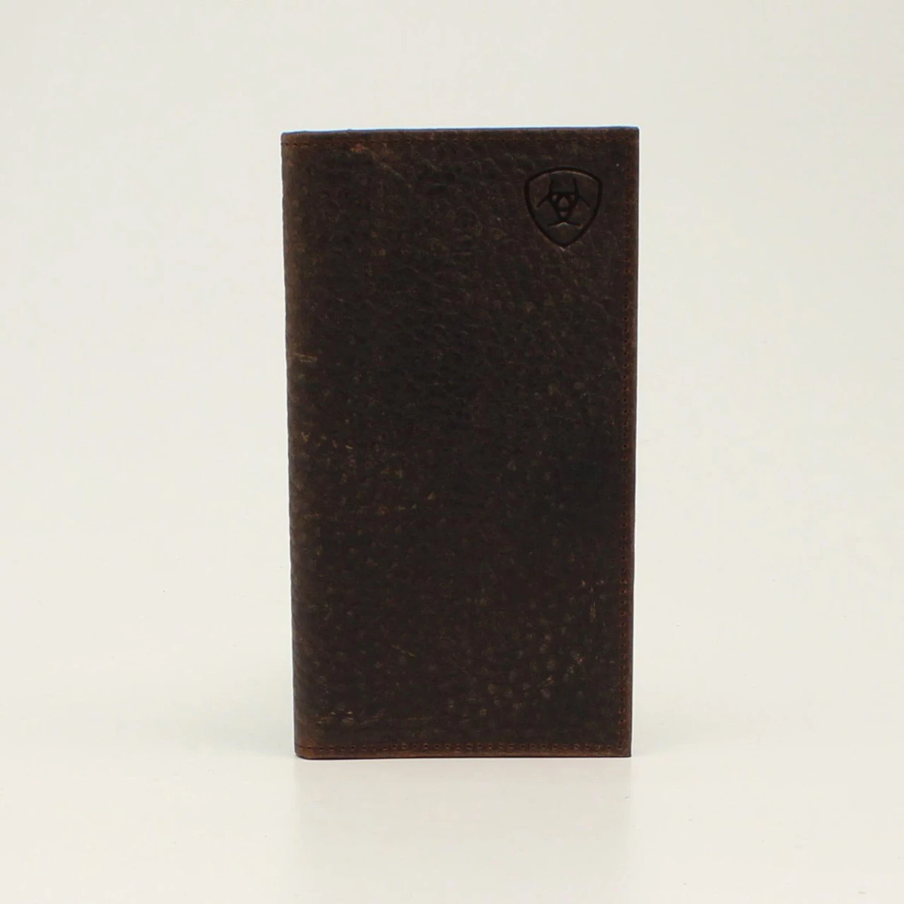 Stay organized with this rodeo style Ariat wallet by M&F Western Products. Genuine leather with an Ariat shield in the upper right corner. Features multiple compartments for your credit cards, cash and ID.
