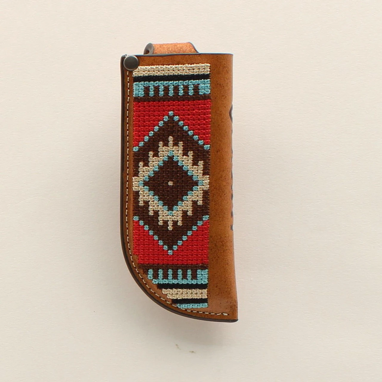 Carry your favorite knife with you every day with this Ariat knife sheath by M&F Western Products. This quality sheath has a multi colored, southwestern fabric design on front and Ariat text and shield logo down the side. Fits up to a 1-1/2รขยย wide belt. Designed for pocket knives.