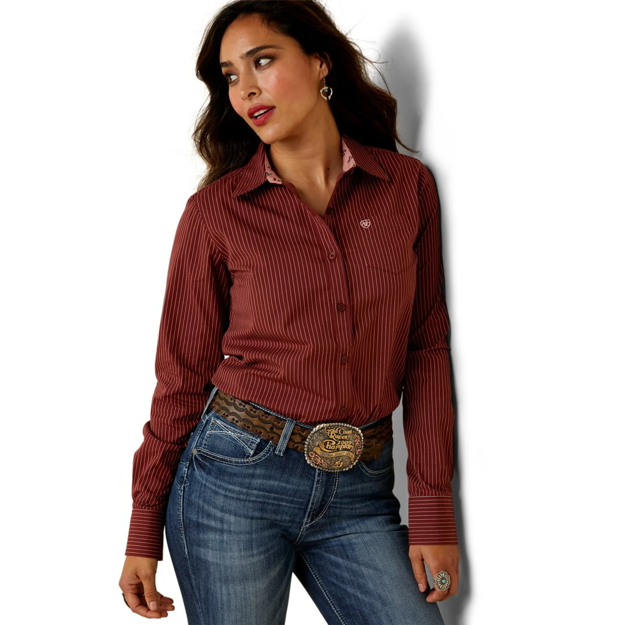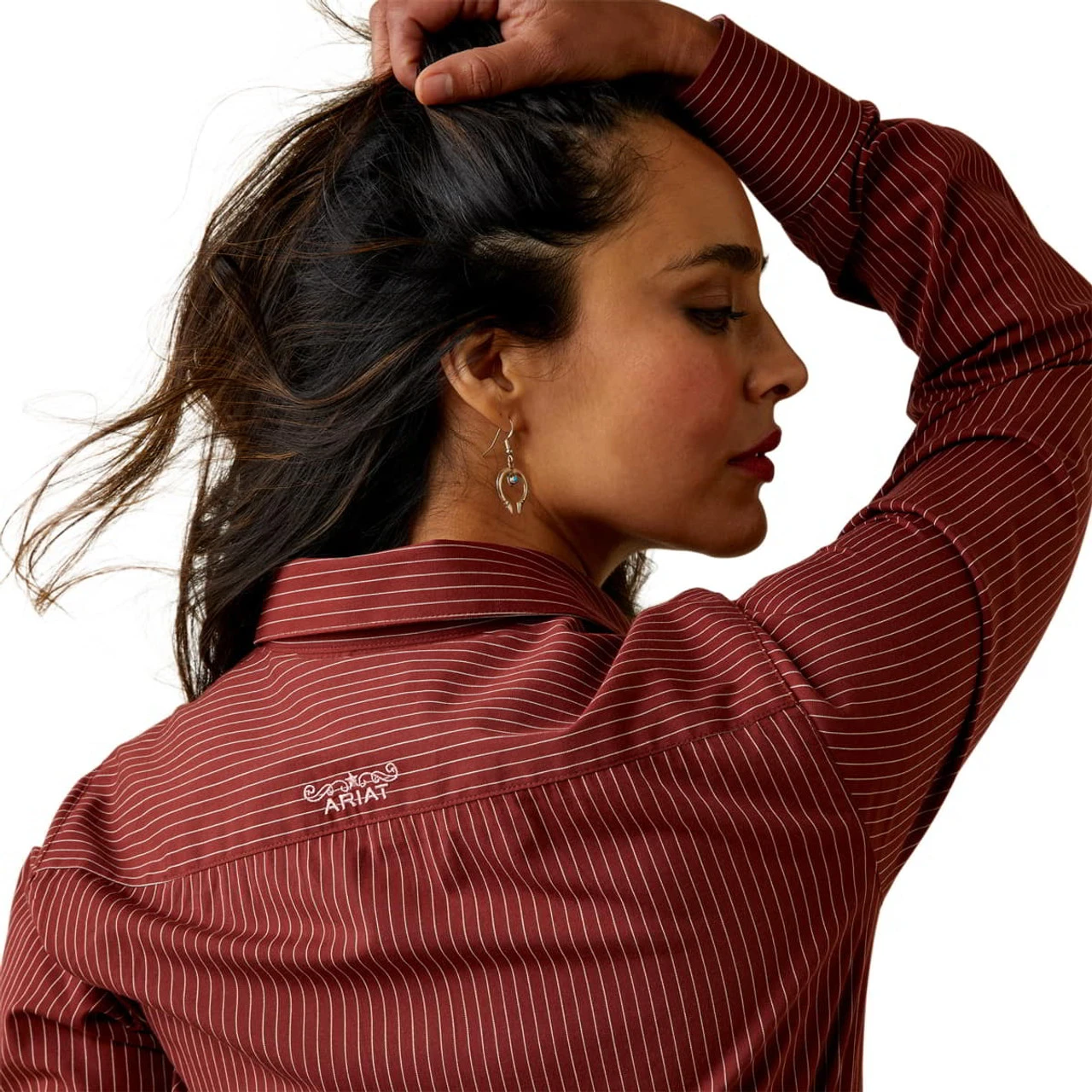 Ariat Womens Fired Brick Pinstripe Kirby Stretch Long Sleeve Shirt